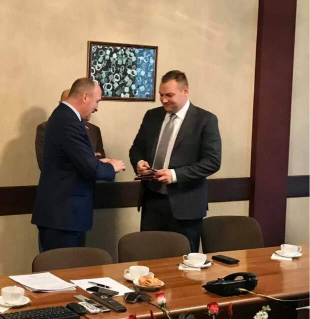Леонид Музалевский на вручении Сергею Кутенёву партбилета «Единой России» и юбилейной медали областного Совета народных депутатов.