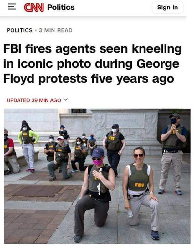 По данным СМИ, уволено порядка 20 агентов ФБР, которые позировали в те дни для фото, стоя на коленях.