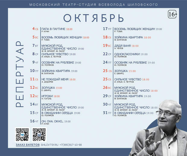 11 октября в 18:00 в Московском театре Всеволода Шиловского;