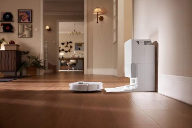 У этой модели тоже есть многофункциональная док-станция, которая значительно облегчает уборку и уход за самим пылесосом. Док-станция с автоматическим режимом делает больше, чем просто выгрузка мусора и мытье робота — она позволяет пользователю не отвлекаться на эти рутинные задачи и сосредоточиться на более важных вещах. Среди функций станции — автопромывка салфеток для пола, автосушка, автоматическое опорожнение пылесборника с фильтрацией пыли на 99,9%, автозаполнение бака водой, зарядка вне периодов пиковой загрузки.