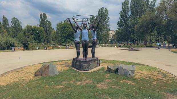 В таком виде на площади парка имени Юрия Гагарина Симферополя девушки стоят до сих пор. Прошедший на днях дождь придал композиции эротичности, что отметили посетители позже, в социальных сетях, посетовавшие о затянувшемся овэдэвэшивании граций.