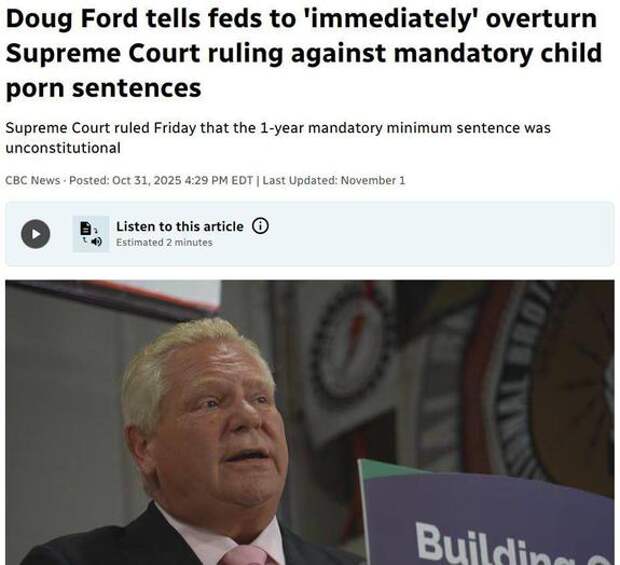 Верховный суд Канады на днях решил, что назначение минимального срока в один год мужчине за покупку и хранение детской порнографии является «жестоким и необычным наказанием» и «чрезмерно несоразмерным».