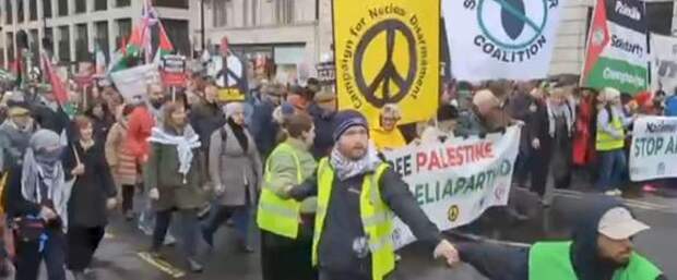 Десятки тысяч человек вышли на демонстрацию в центре Лондона, требуя открытия гуманитарных коридоров в сектор Газа и прекращения «этнических чисток» в Палестине. Участники акции также выразили протест против наличия у Израиля ядерного оружия.