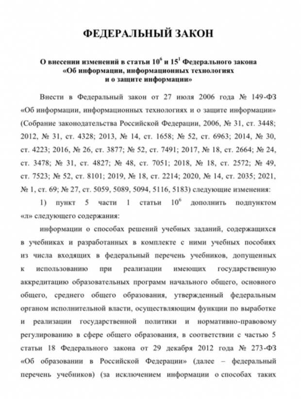 Минпросвещения РФ подготовило законопроект о блокировке в интернете готовых домашних заданий из учебников и пособий.