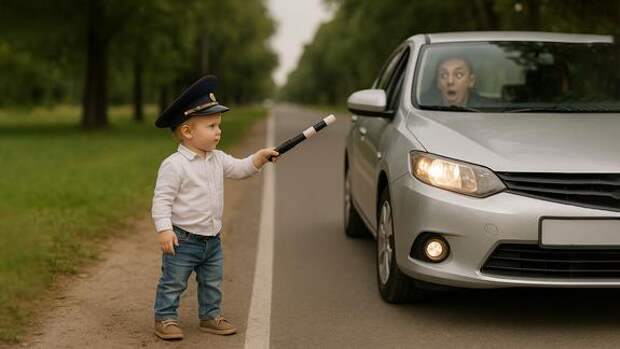 В Керчи родители пошили ребенку форму ГИБДД, купили фуражку, выдали жезл и отправили к дороге.
