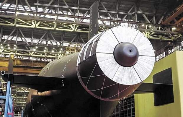 На днях спустили на воду новую субмарину «Хабаровск», которая строилась по проекту 09851. Сам корабль не показали, были лишь кадры с его хвостовой части. На них видно, что лодка имеет несомненное родство с хвостовой частью корпуса ракетных подводных крейсеров стратегического назначения (РПКСН) «Борей»/«Борей-А». Такие же характерные вертикальные и горизонтальные рули, такая же система выпуска протяжённой буксируемой гидроакустической антенны главного гидроакустического комплекса и так далее. Как выглядит сам корабль – пока сказать сложно.