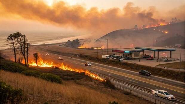 Май и начало июня 2025 года выдались на Крымском полуострове бездождливыми, что привело к высушиванию как культурной, так и дикой растительности на полях. Что стало причиной возгорания не известно – бутылка, сфокусировавшая солнечные лучи; случайно выброшенный окурок; поджог – но остановился огонь полыхающего поля в нескольких метрах от заправки сети ТЭС, расположенной слева по движению в Керчь.